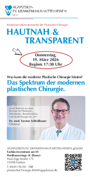 Herzliche Einladung zur kostenfreien Informationsreihe des Zentrums für Plastische-, Ästhetische-, Rekonstruktive- und Handchirurgie am „EV“.