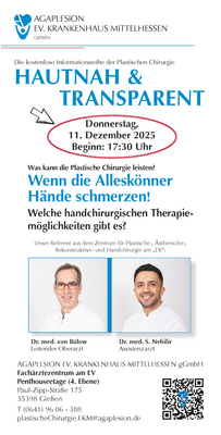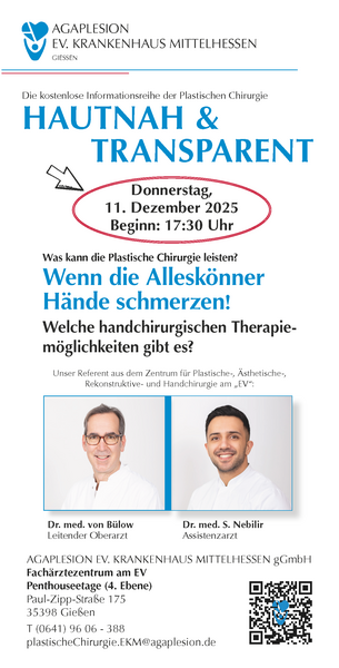 Herzliche Einladung zur kostenfreien Informationsreihe des Zentrums für Plastische-, Ästhetische-, Rekonstruktive- und Handchirurgie am „EV“.